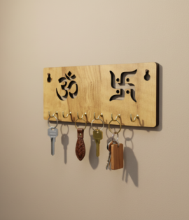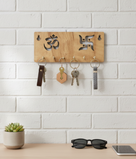 Wooden Key Holder for Wall – Om & Swastik