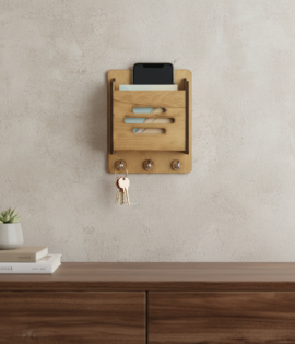₹69.00Current price is: ₹69.00. Original price was: ₹149.00.Wooden Key Holder with Mobile Stand | Minimal Home Entryway Décor